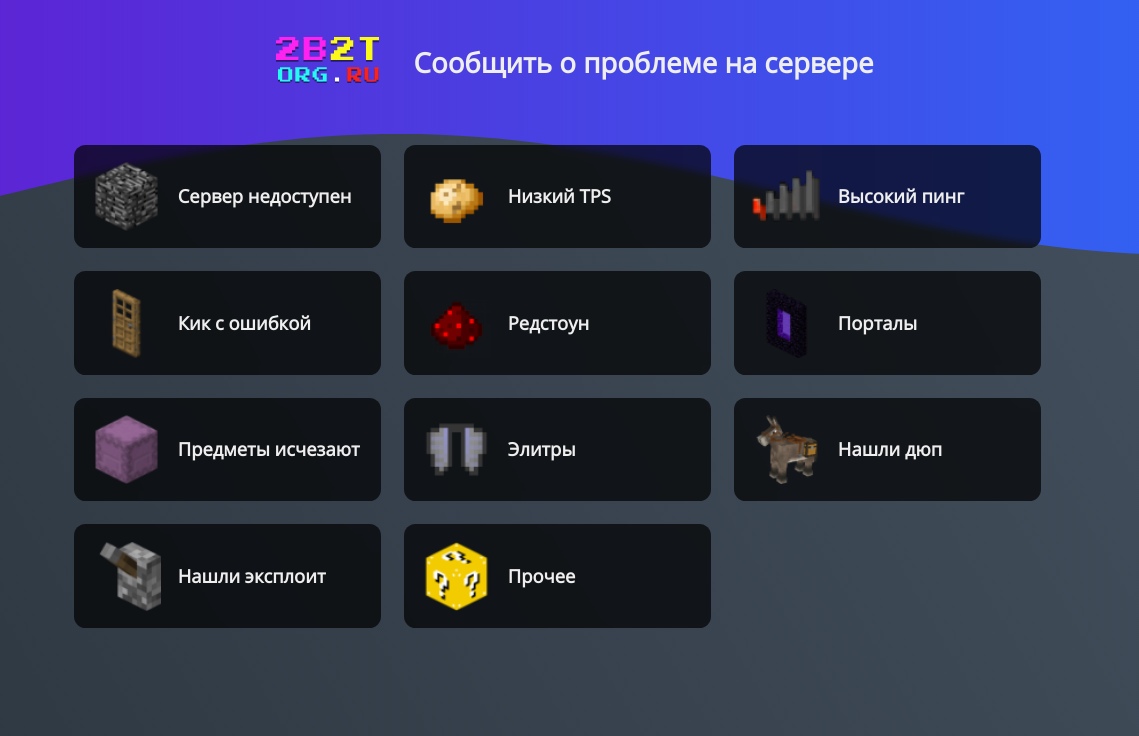Готов объявить о завершении создания страницы для фитбека, на случай каких-либо проблем с сервером. Воспользоваться ей можно по адресу https://feedback.2b2t.org.ru