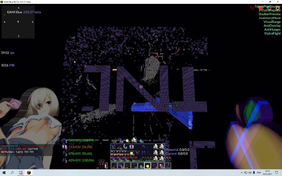 Первая моя база была на -15к -15к по обыному миру. Играл я с MoonWhisper‘ом около 2 недель, потом нас грифанули просто сломав пару блоков, ну да похуй, и объявили на весь сервер. После всей это движухи я вступил в клан дефов, где главным был DEFLORATOR228. Они дали мне тотемов, элитру, шалкера с тнт и с эндер сундуками, так как они нашли стеш.