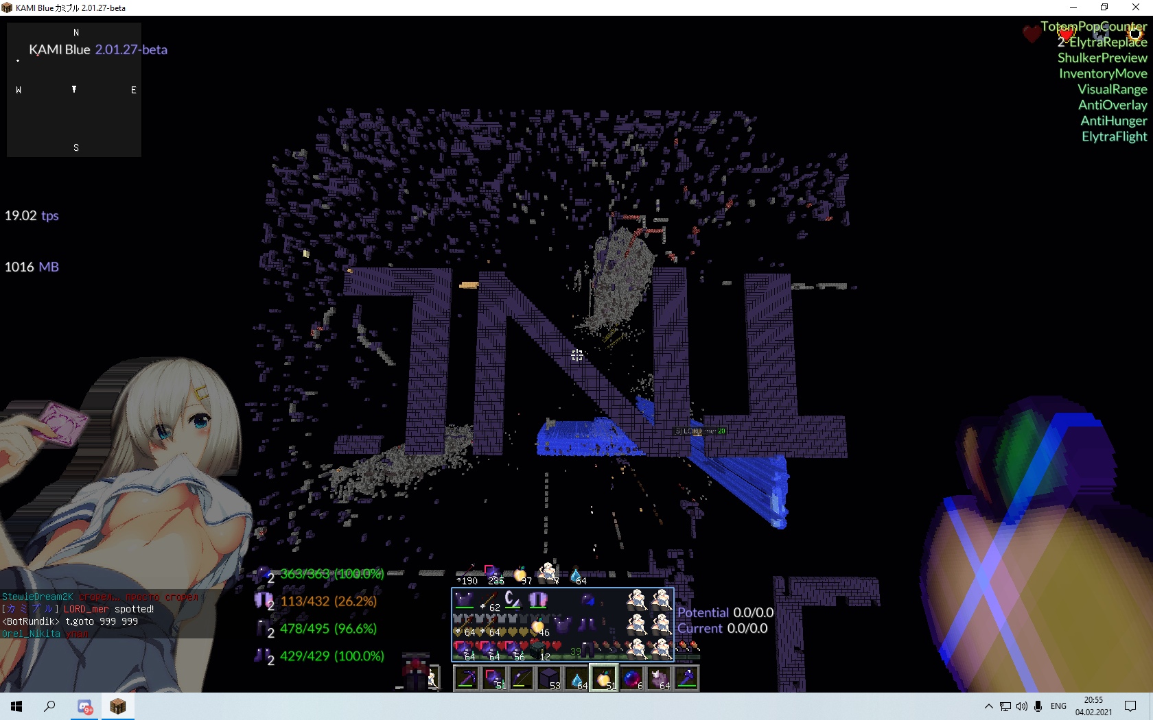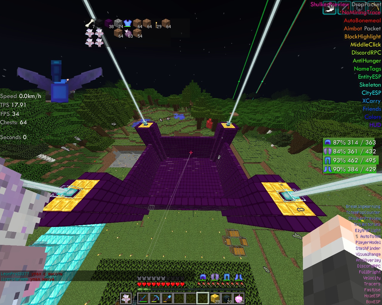 Первая моя база была на -15к -15к по обыному миру. Играл я с MoonWhisper‘ом около 2 недель, потом нас грифанули просто сломав пару блоков, ну да похуй, и объявили на весь сервер. После всей это движухи я вступил в клан дефов, где главным был DEFLORATOR228. Они дали мне тотемов, элитру, шалкера с тнт и с эндер сундуками, так как они нашли стеш.