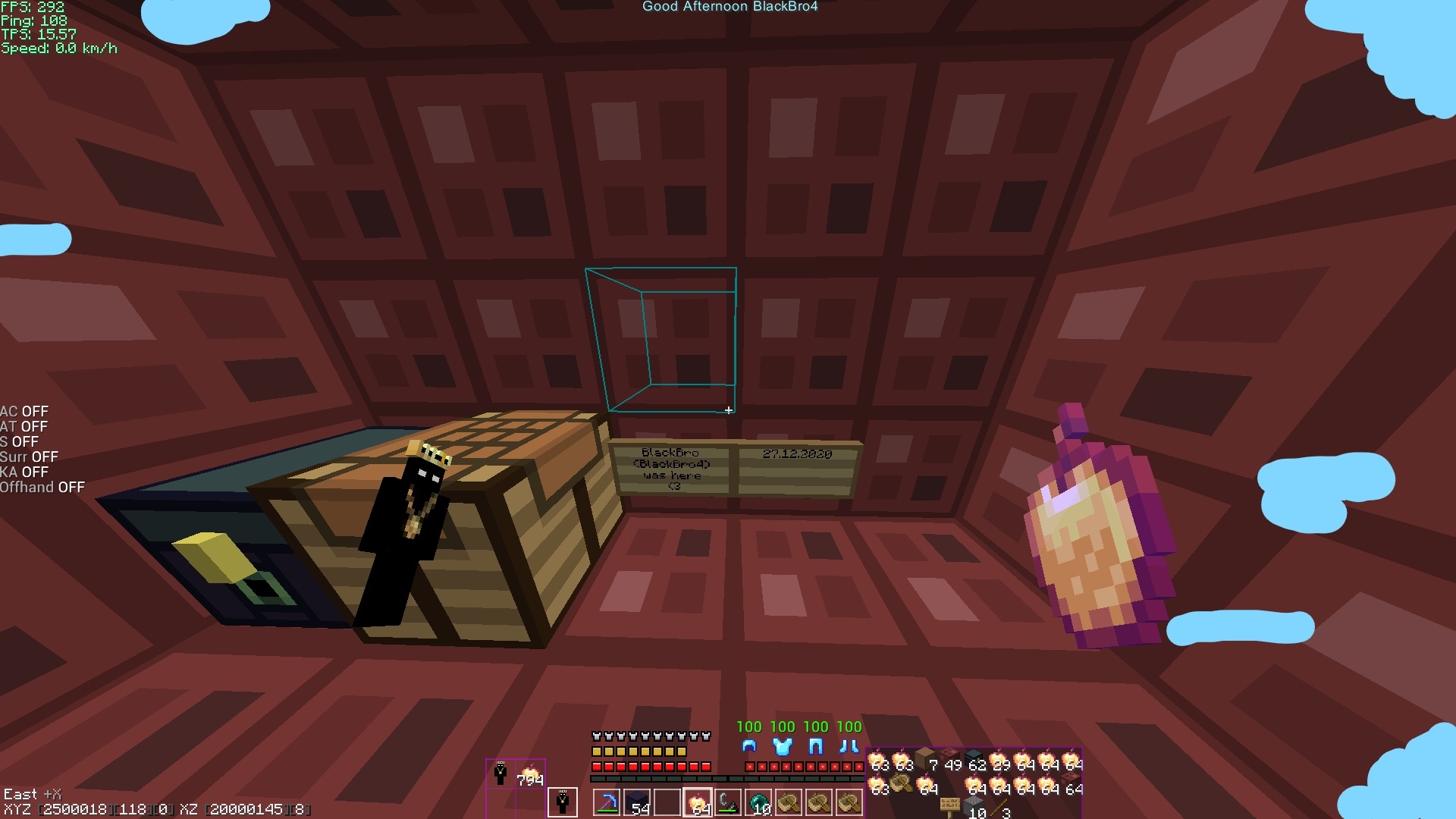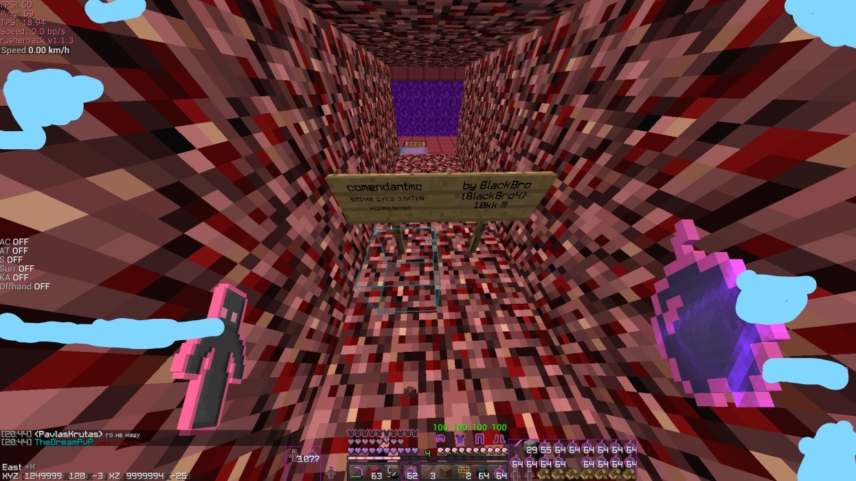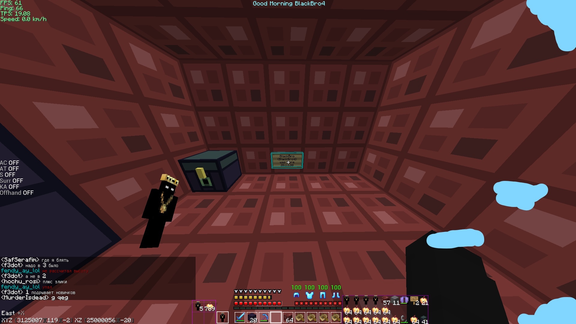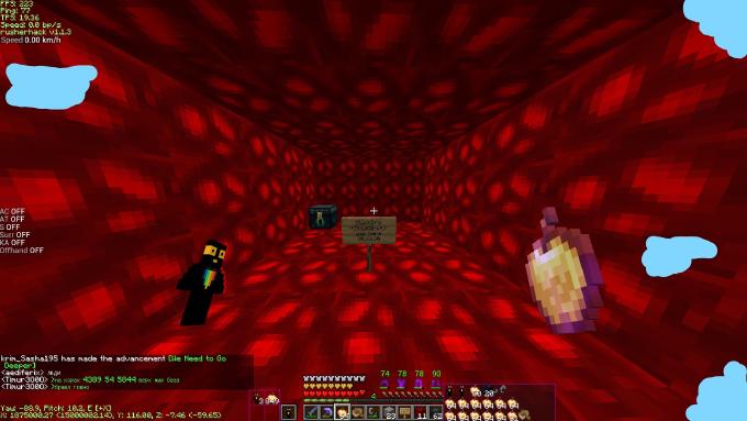 Сначала я с NikitaBMX летели по -х и умерли. Было еще несколько попыток, но все заканчивались одинаково. Потом мы на какой-то промежуток времени ушли с сервера. И вот сейчас, благодаря рашерхаку (blackkk), я с хамехой долетели, а лясик не смог из-за того, что просто не успел до фикса лодок.