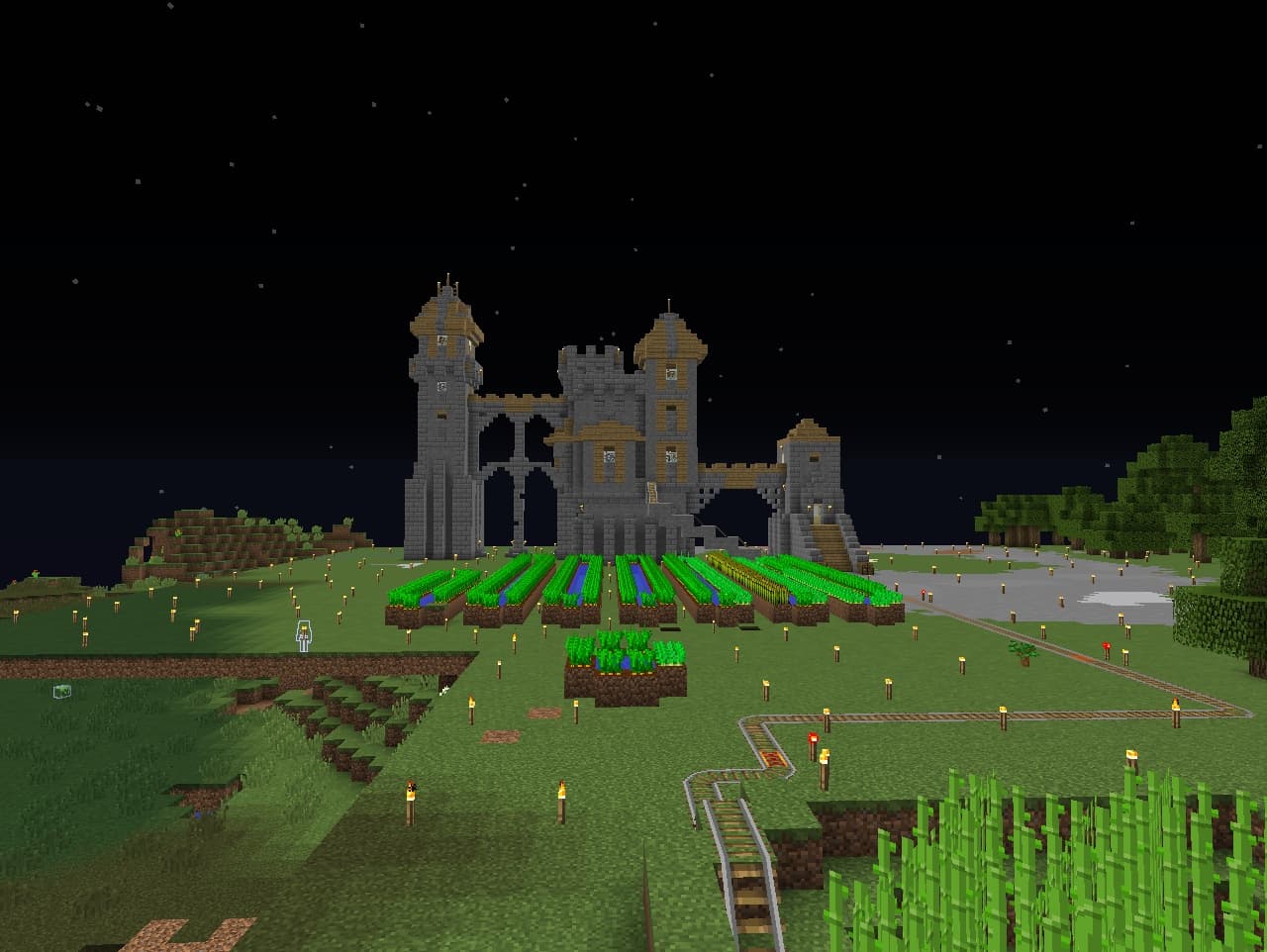Так же я построил небольшую магистраль длинной около 600-800 блоков, которая ведёт к удачно сгенерированной Адской крепости, которую я на данный момент усердно скапываю, для получения адских кирпичей в огромных количествах. Так же я построил маленький замок, который вы увидите ниже.