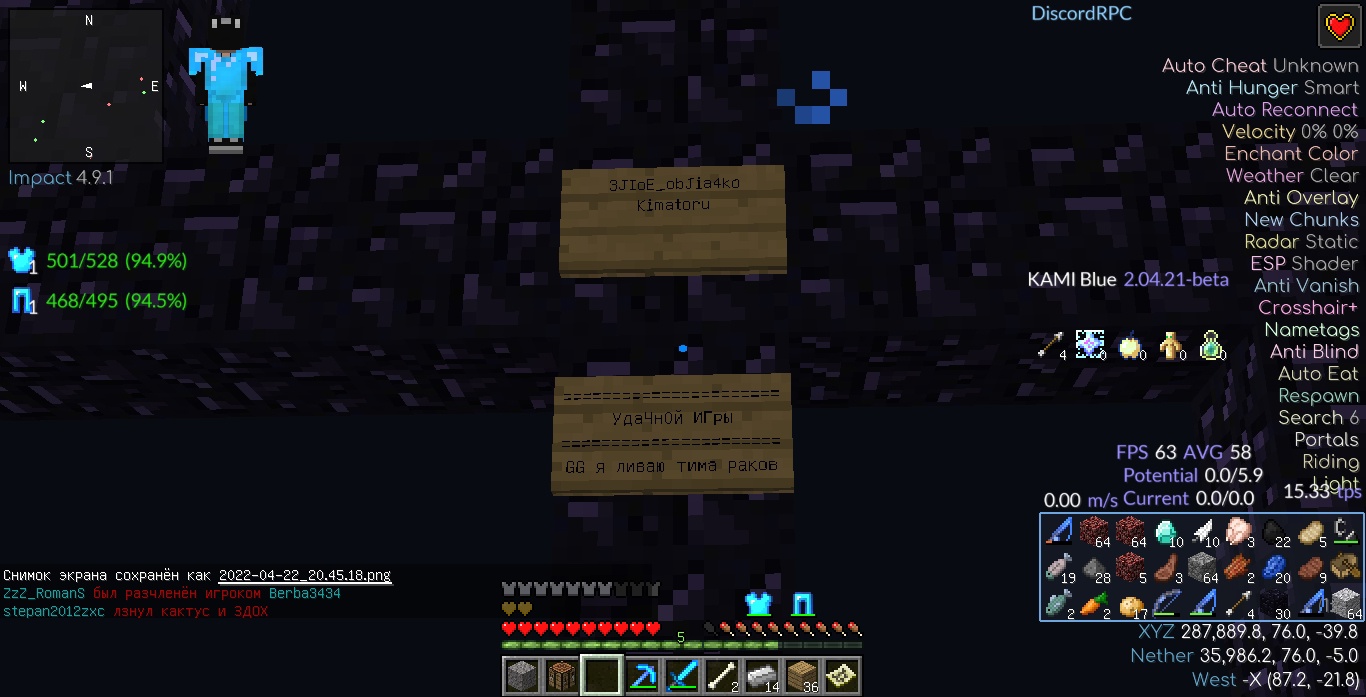 Мы стоим на афк рыбалке, как на нас нападает топер с тотемом. Он выносит нас и ломает кровать. Мы вернулись туда, а там все было взорвано, а все ресурсы сожжены… Там же было знамя плохого дяди и табличка с никами. Я помню, что напал на нас kimatoru или что-то такое. Если ты это читаешь, то ты плохой >:(.