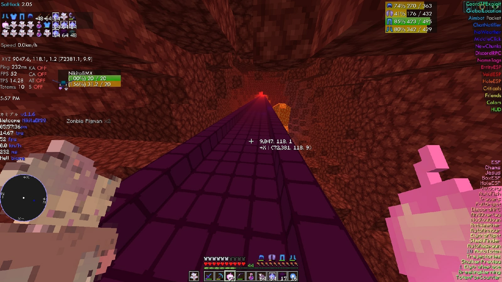 P.S. Новички, вначале отойдите на 2к от спавна по миру, зайдите в ад, найдите магистраль. А потом уже, если хотите, идите на -1900 120 1900 по аду. Там бывшая база Диябло. Всем покеда