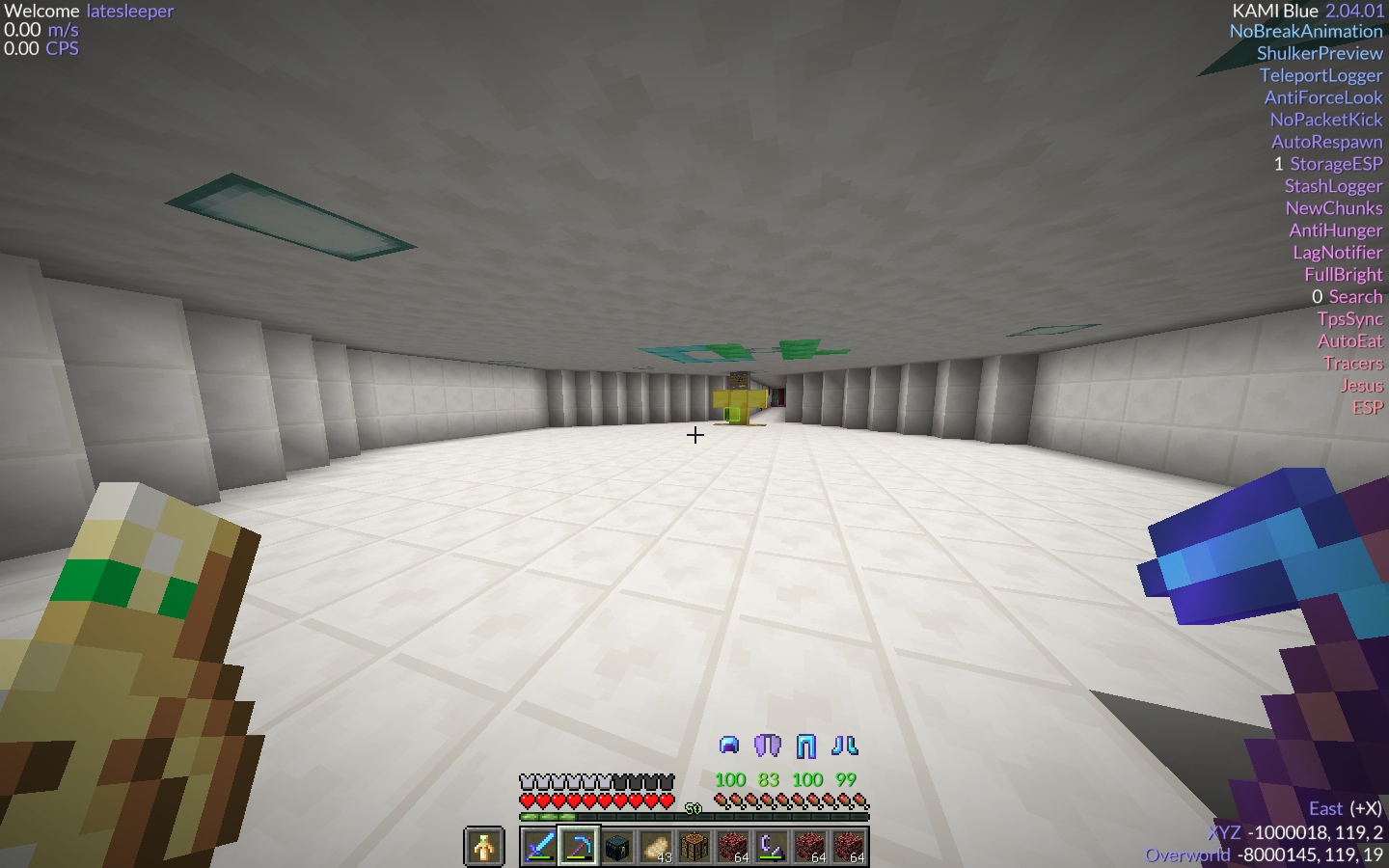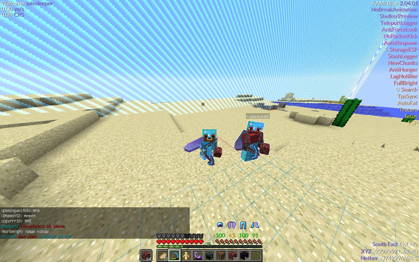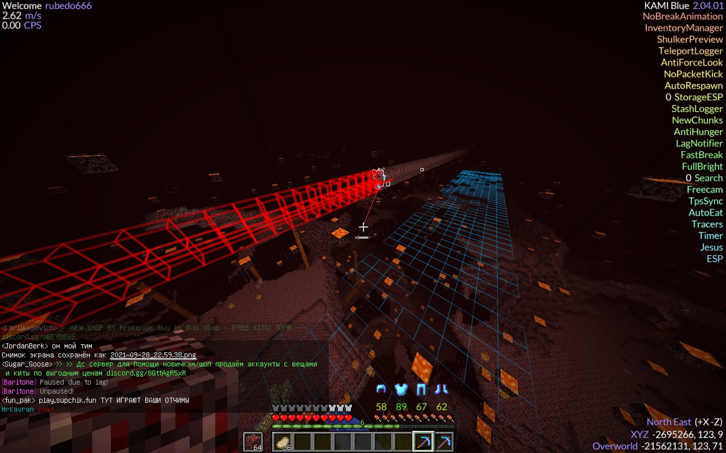 Когда всё было готово, я выдвинулся продолжать копать туннель. Так как для экономии времени и ресурсов было запланировано чинить кирки то, для этих целей в моём kami blue был включён inventory manager, также он выполнял функцию отчистки инвентаря от адского камня. Начав копать, скоро мной было замечено, что баритон в момент низкого тпс постоянно застревал, хотя перед ним не было блоков, это явно было связано с лагами на сервере, поэтому был включён LagNotifier который, решил эту проблему.