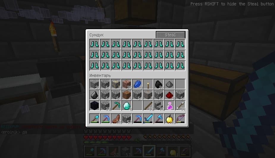 Это ощущение полностью пропало, и моя аккуратность тоже. Ведь есть против мобов - защита 4, упадёшь - лёгкость 4, под водой, благодаря шлему на подводное дыхание и ботинкам на подводную ходьбу, можно держаться очень долго. На данный момент я даже не хочу отходить от базы, ведь стоит мне прогрузить новые чанки, меня могут найти. Так же появились дюпы, которых раньше, насколько я понял не было, да и увлекаться ими тоже не стоило слишком сильно, ведь как говориться, большая сила накладывает большую ответственность.)