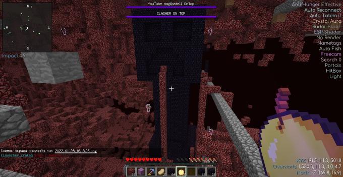 Мы установили импакты и нашли спавн базу 2-х игроков, помогающих новичкам. Мы туда пришли в обед и весь день были там, пока те самые игроки на залили все лавакастом. Adrex решил пока не играть, а я отошел от спавна на 3000 блоков по аду и построил домик. Дальше я вступил в клан Ignis. Там была красивая база, а главой клана был Klumper. Я пригласил в клан Adrex’a, и мы стали играть там. Через 3-4 дня после вступления в клан пришел равандполик, который устроил конкурсы на ресурсы. Тогда я получил свои первые элитры с его подписью. После этого события через день базу нашли, и мы решили переехать. Тогда присоединился K1GC, с которым я недавно подружился.
