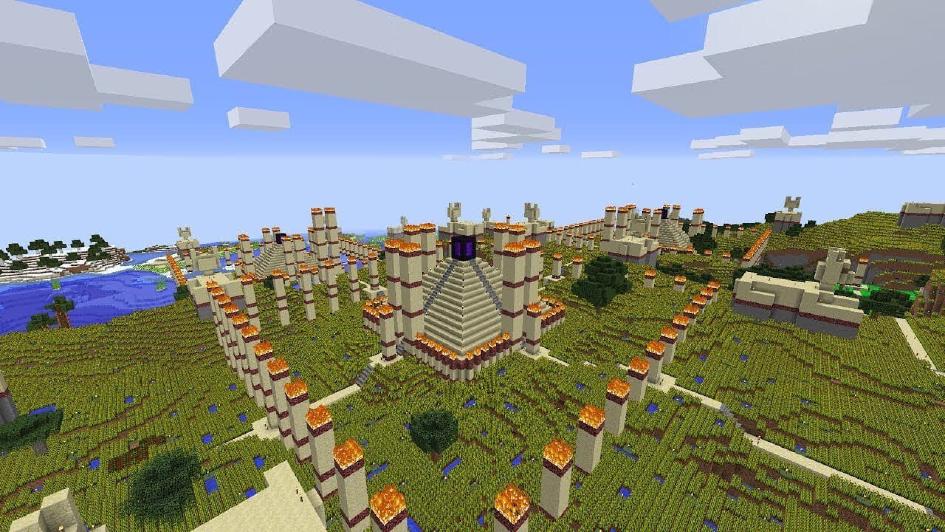 Все будет стандартно, огромное поле пшена, с тростником, картофаном и морковкой. Плюс пирамидки и постройки.