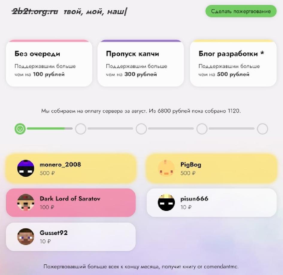 Поддержать сервер любой суммой можно на donate.2b2t.org.ru