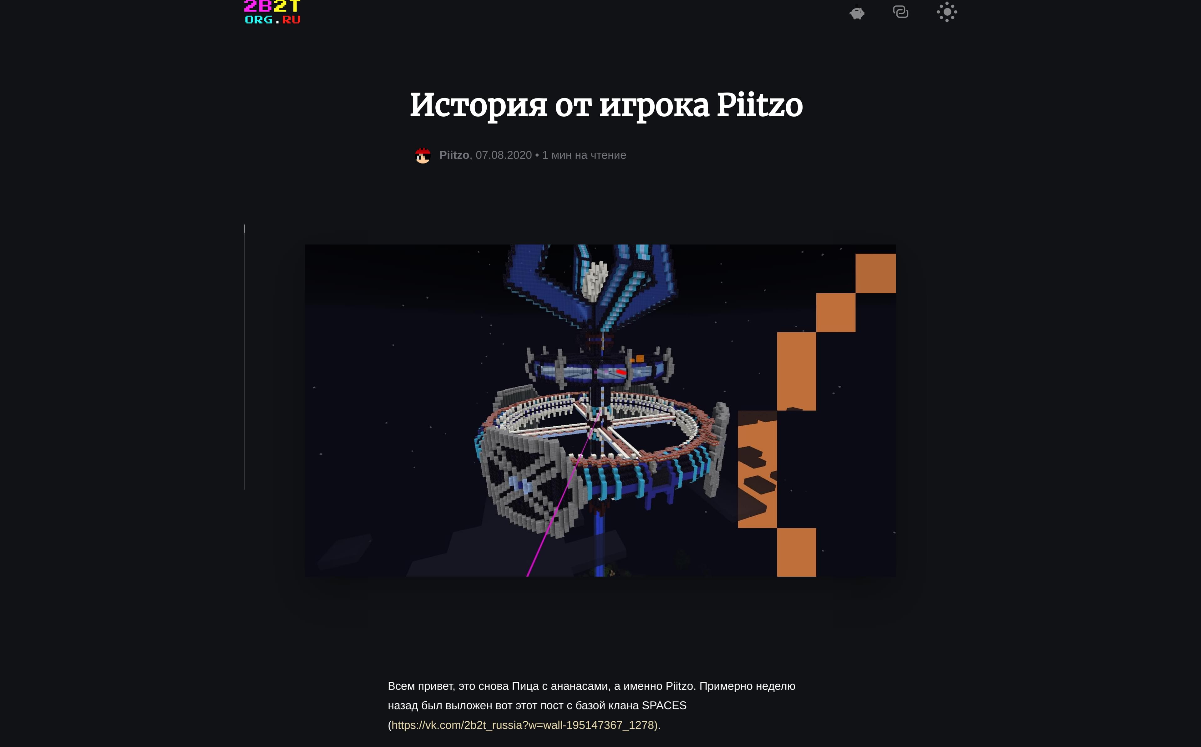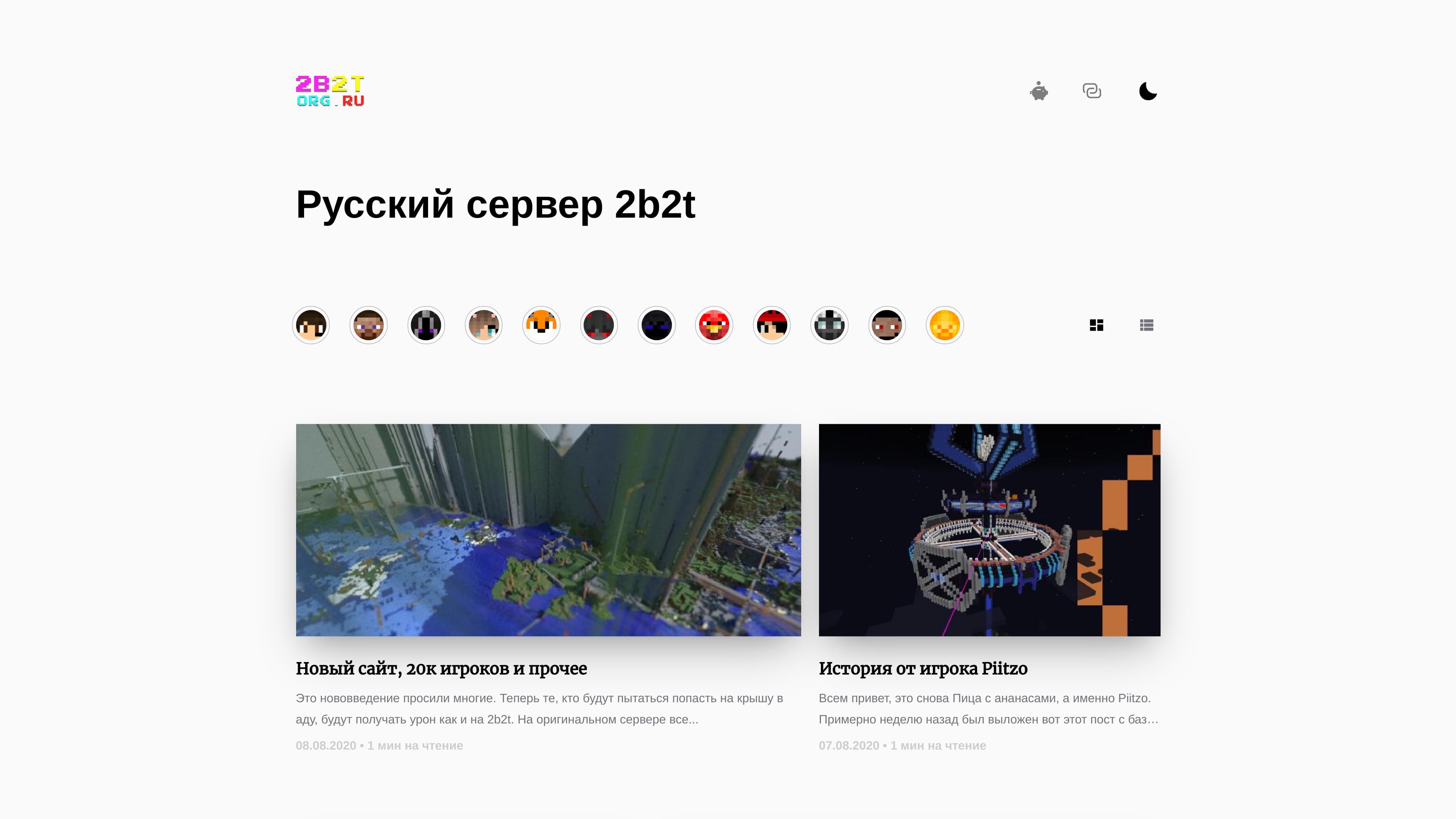 Приурочив это к 20к игроков, я запускаю новый сайт 2b2t.org.ru, в котором я собрал и переработал все статьи со всех платформ (даже не спрашивайте, сколько я бы успел сделать на сервере за это время).