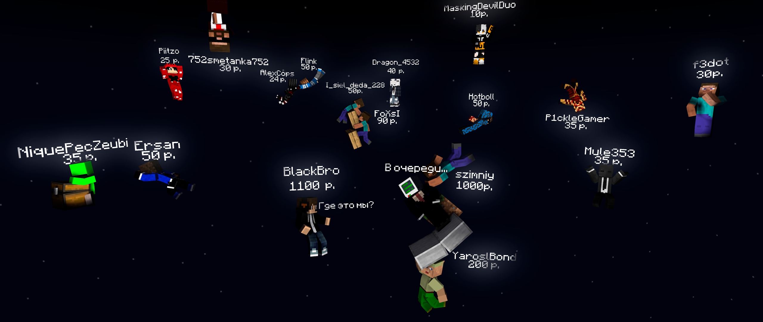 Поздравляю топ донатера BlackBro, который продолжает поддерживать сервер даже спустя столько времени. Он задонатил целых 1100 рублей! Он получит книгу с благодарностью, подписанную мной - comendantmc и еще пару плюшек 👏. Также хочу отметить szimniy, который поддержал сервер на целых 1000 рублей!